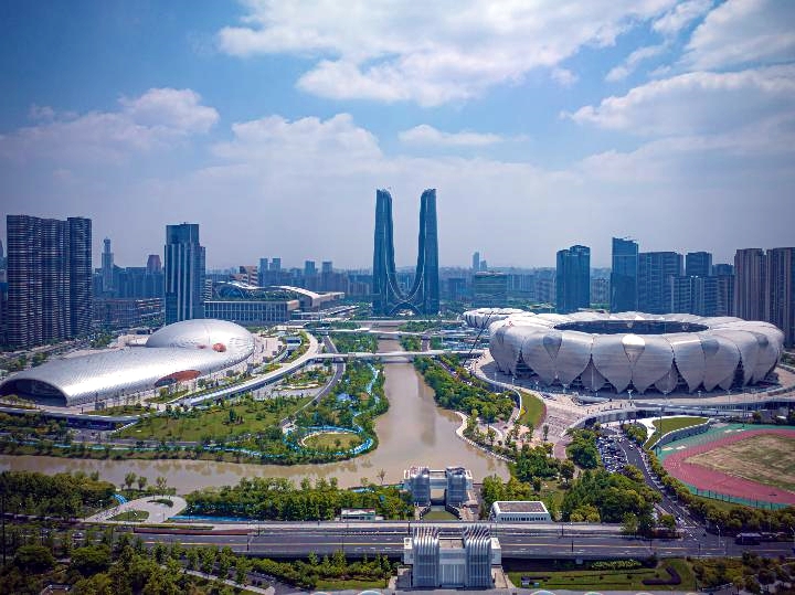 立秋刚过,江南暑气渐消,以“莲花碗”为代表的杭州亚运会体育场馆在钱塘江畔静候四海宾客。