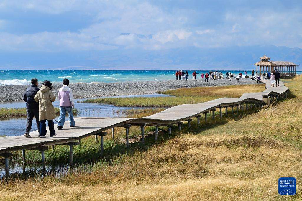 赛里木湖(简称“赛湖”)位于新疆博尔塔拉蒙古自治州,是新疆海拔最高、面积最大的高山湖泊。秋日里,赛里木湖碧波万顷,风景如画,吸引各地游客前来游览。