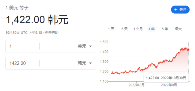 多家华尔街机构认为,韩国央行在加息方面的速度要远远落后于美联储。由于韩国和美国之间的利差不断扩大,韩元兑美元汇率在年底可能会跌至1美元兑1500韩元。