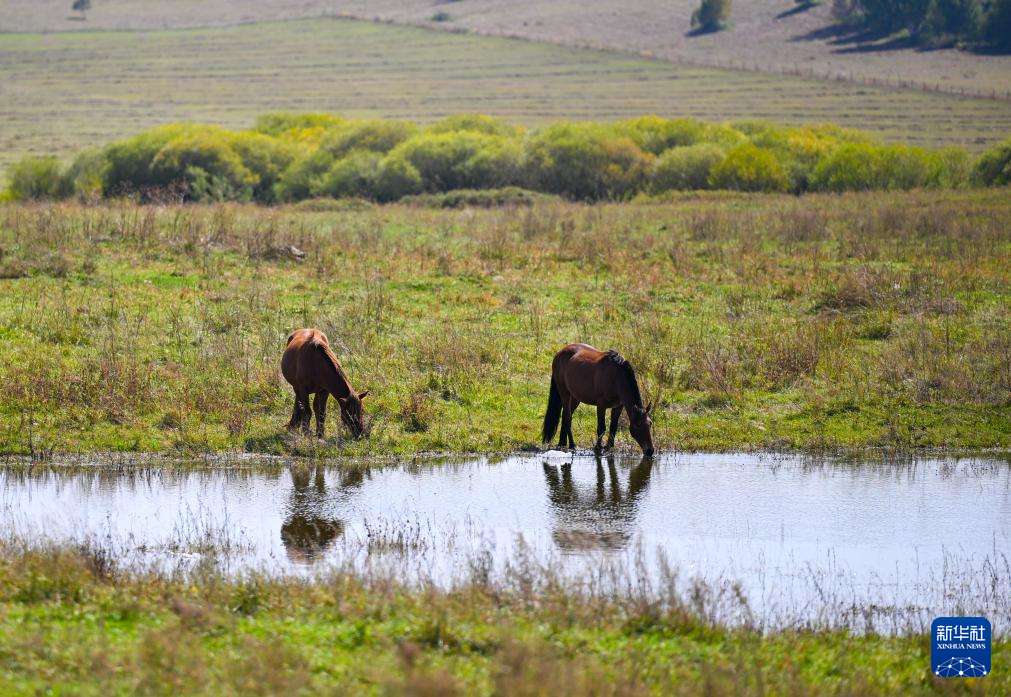 9月12日,马匹在乌兰布统草原上觅食。