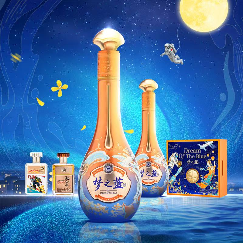 今年中秋,洋河还推出梦之蓝·幸福美满礼盒,以活力橙与深邃蓝碰撞,将嫦娥、玉兔等传统意象与宇航员、航天器巧妙融合,寄托着团圆兴旺、探索未来的美好寓意。