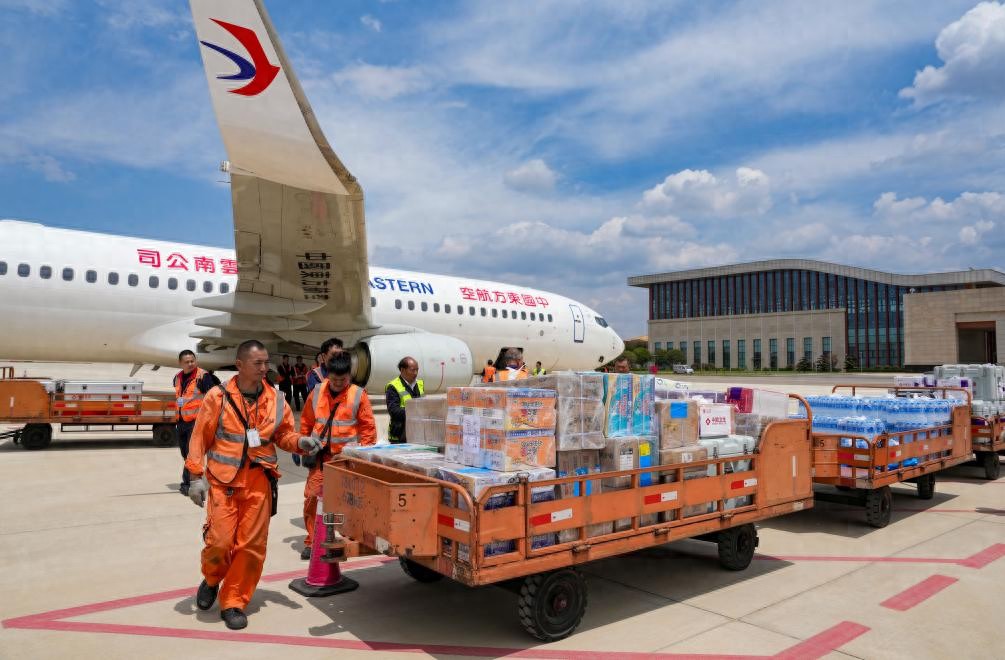 这是2025年4月19日在昆明长水机场拍摄的中国政府援缅卫生防疫队携带的物资。新华社记者陈欣波摄