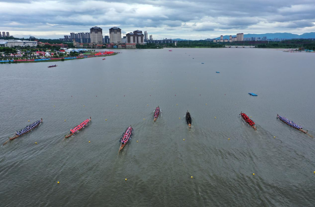 5月23日,2025中国南昌国际龙舟赛在南昌市红谷滩区九龙湖水域开赛。新华社记者周密摄