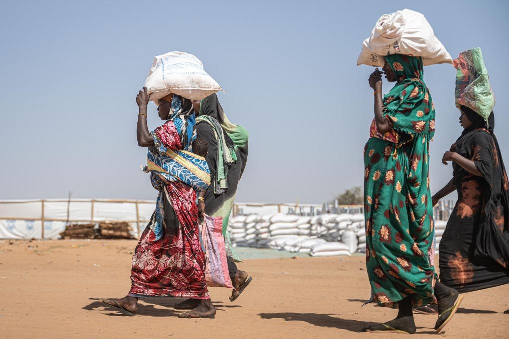 6月25日,苏丹难民在与苏丹西达尔富尔州接壤的乍得东部城镇阿德雷搬运食物。新华社记者王冠森摄