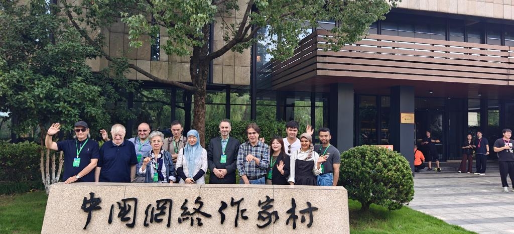 2025中国国际网络文学周期间,海外作家代表参访位于杭州的中国网络作家村。新华社记者余俊杰摄